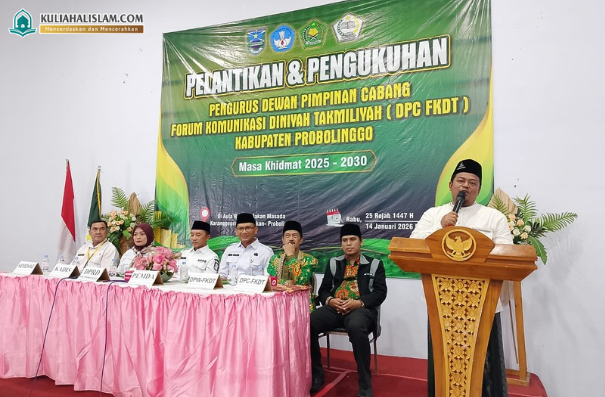 PROBOLINGGO – Gus Ahmad Ubaidillah resmi dilantik dan dikukuhkan sebagai Ketua Dewan Pimpinan Cabang Forum Komunikasi Diniyah Takmiliyah (DPC FKDT) Kabupaten Probolinggo masa khidmat 2025–2030. Prosesi pelantikan berlangsung khidmat pada Rabu (14/1/2026) di Rumah Makan Masada, Kecamatan Pajarakan, Kabupaten Probolinggo.