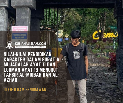 - Nilai-nilai pendidikan karakter dalam surat Al-mujadalah ayat 11 dan Luqman ayat 13 menurut tafsir al misbah dan al azhar, mengajarkan pentingnya berkarakter susuai dengan ajaran Islam, seperti menghormati dan memuliakan orang yang lebih Tua terutama kedua orang tua, cinta ilmu pengetahuan, bertauhid kepada Allah.