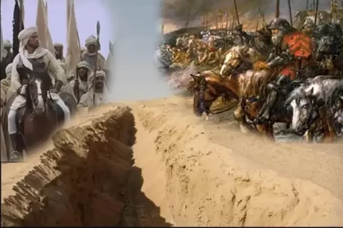 Kuliahalialam.com-Perang Khandaq (Parit) merupakan peperangan antara pasukan Islam dan pasukan sekutu yang terdiri dari kafir Quraisy, Gatafan, dan Yahudi. Pada bulan Syawal tahun 627 Masehi. Pasukan Islam berkekuatan sekitar 3.000 orang di bawah komando Nabi Muhammad shallallahu alaihi wasallam dan pasukan sekutu berkekuatan sekitar 10.000 orang di bawah komando Abu Sufyan. Peperangan ini terjadi karena adanya hasutan beberapa orang Yahudi dari Bani Nadir dan Bani Wa’il yang tidak puas terhadap keputusan Nabi Muhammad Shallallahu Alaihi Wasallam atas penempatan mereka di luar Madinah. Mereka yang berasal dari Bani Nadir adalah Abdullah bin Sallam bin Abi Huqaiq, sedangkan dari Bani Wa’il adalah Huwazah bin Qais dan Abu Ammar.